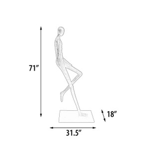 Modern abstract sculpture featuring a tall slender black figure in a relaxed pose with one leg bent and arms at the sides. Crafted with textured detailing, this contemporary art piece embodies minimalism and elegance, making it ideal for display in living rooms, offices, or galleries. The matte black finish and elongated design create a striking visual effect, perfect for modern and sophisticated interiors. A unique decorative accent that symbolizes balance, calm, and artistic expression.