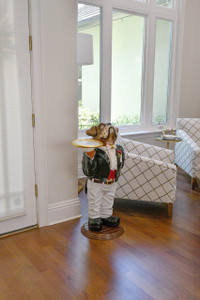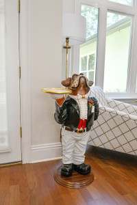 From the enjoyable Whimsical Bistro Buddies Collection we present the Boxer Butler from Whimsical Treasures. This multicolored whimsical butler featuring an arrogant bulldog butler dressed in a tuxedo holding a round gold tray will add playfulness to your rooms decor.