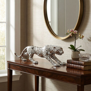 - A popular decorative Standing Silver Leopard 31 Inches Long sculpture of walking Leopard depicted this animal in a prowling position showing movement. Hand cast in ceramic and resin. Features a striking Silver plated finish.