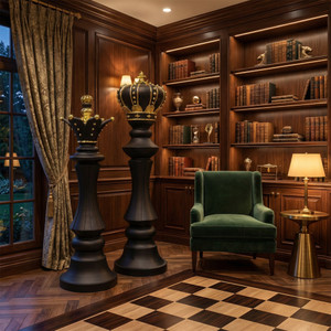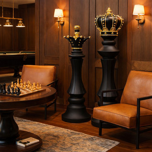 Artistic and fun the life size chess pieces are light weight and durable. Constructed in fiberglass the set of statues can be used indoors or out. Each piece is given a handpainted finish that makes them look so real no one will know. A knight always protect his king and with this pair he’ll always be able too. Please avoid direct sunlight to protect the handpainted finish. For long periods of outdoor exposure we recommend sealing the pieces with a clearcoat.