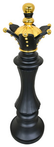 - Artistic and fun the life size Queen chess piece is light weight and durable. Constructed in fiberglass the statue can be used indoors or out. Each piece is given a handpainted finish that makes them look so real no one will know. Its a Queens job to rule the board and with this piece she always will be able too. Please avoid direct sunlight to protect the handpainted finish. For long periods of outdoor exposure we recommend sealing the pieces with a clearcoat.