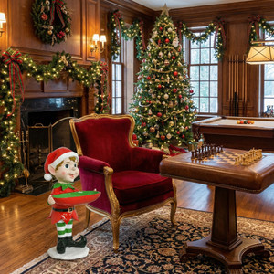 • Introducing our enchanting 40-inch tall Figural Elf, the epitome of holiday charm and whimsy. This delightful elf figure is meticulously crafted and features a hand-painted finish in festive holiday colors that evoke the magic of the season. To enhance its allure, each piece is treated to a lustrous lacquer finish, resulting in a beautiful high shine that captures the spirit of the holidays. Standing proudly with a tray in hand, this Figural Elf is not just a decoration; it’s a heartwarming addition to your holiday festivities. Place it in your home to welcome guests with its cheerful presence or let it grace your holiday gatherings with its joyful spirit. Embrace the magic of the season with this meticulously crafted and beautifully finished holiday decor piece.