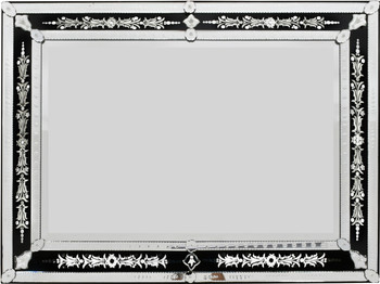 The Venetian Mirror was born in Italy on the island Murano in Venice. Skilled artisans in the village of Murano started producing mirrors around the 15th century painstakingly creating unique pieces for Royalty and Nobles. Gradually with the passing of time the high quality of mirrors from the Isle of Glass spread around the globe. Inspired by these original European designs of royalty, each Venetian Glass Mirror with Black Border authentically captures the dedication of the artisans of the past. With a grand scale the mirror comes with D rings attached to the frame for hanging vertically or horizontally. Anchors and other materials needed to hand, not included with purchase. Use the Venetian Glass Mirror with Black Border in the entry, powder room, above a vanity, or anywhere a little glamorous old world style is needed.