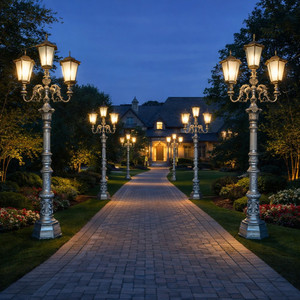 - The Bridgeton Moore Aluminum Estate Entry Gate and Fencing Collection offers an Elegant Design. It is an investment in a quality that adds value to your property and makes your home more beautiful and secure. It is also, the only complete estate system of its kind, cast in Aluminum, a system that will never rust. This particular item is the Bridgeton Moore Street Light 128 Inches Tall 3 Lantern, standing 48″ wide x 19″ deep x 128″ tall. A thicker Casting in 100% aluminum is used that will never rust, and creates a more substantial Lantern and Post, the light comes pre-wired with UL wiring and sockets. The finish is a rich brown bronzed tone with hand brushed highlights that accent the details and then a long lasting double powder coat finish is applied. This item can be used as a beautiful stand-alone exterior light but it is also part of the incredible Bridgeton Moore Estate System, a complete traditional and exclusive collection of beautiful Driveway and Entry Gates, Fencing, Railings, Posts and Lights. Bridgeton Moore has taken 10 years of developing and evolving this to be the finest most complete system in the market. Our customer service associates are available to help with your correct ordering. The parts are fully welded constructed but assembly and wire connections are required. Bridgeton Moore has established high brand quality standards and offers one of the best warranties in the Industry, 3 years on all frames and finish under normal conditions, against any manufacturing defects from date of purchase. Note * All products used outdoors require reasonable care and that level of care depends on varying external conditions. Extended exposure in coastal areas can cause corrosion and while this product is used in many coastal applications, they are voided from warranty. Simple hosing down or rinsing off salt exposure if/any will protect and extend the beautiful finish. Assembly Required.
