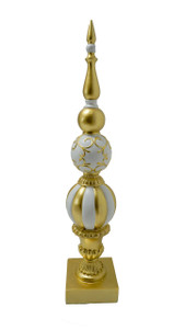 Elevate your home decor with our stunning Regal Gold and White Large Ornate Spire Decor. This exquisite piece combines elegance and sophistication, making it the perfect focal point for any room. Crafted with meticulous attention to detail, the spire features a harmonious blend of gleaming gold and pristine white, adorned with intricate designs that exude luxury. Whether displayed on a mantel, side table, or as part of a curated collection, this striking spire adds a touch of grandeur to your space. Its graceful silhouette and rich textures create a timeless look that complements both traditional and contemporary interiors.Transform your home into a sanctuary of style and refinement with this statement piece that is sure to impress guests and bring joy to everyday living. Make a bold statement today with our Regal Gold and White Large Ornate Spire Decor where artistry meets elegance.