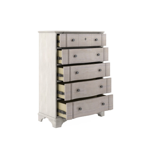 Maximum storage in a smaller footprint, our Alcove Drawer Chest provides five spacious drawers to create a clutter-free environment, promoting a sense of calm and order in your bedroom. The hardware complements the two-tone finish beautifully, adding a touch of vintage charm and enhancing the overall aesthetic of casual elegance.