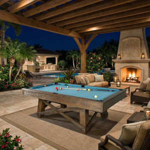 - Introducing our New American Craftsman Design Ash Wood Slate Top Pool Table from AFD Home, distributors of hand carved and hand finished recreations of elegant Pool Tables. The American Craftsman Design offers a quality playing gaming table with a beautiful Craftsman Styling, a perfect choice for many of todays stylish homes. It is crafted using 100 percent Kilim Dried Solid Ash wood, a perfect species of wood for this design showcasing a grain and a hardness for durability very similar to that of American Oak. The table is hand finished in multi step natural wood finishing. The table features Hand Tooled Cordovan Genuine Leather Pockets, Genuine Slate 1 inch Thick, Framed Back, 3 Pieces 1 inch slate arrives cut to precision fit with a solid wood slate support frame and bonded to the underside of each slate piece for ease of handling and installation. Double crossbeam construction offers proper weight bearing capabilities. INSTALLATION The base of table comes completely assembled for strength, The legs require mounting to the base, The Slate will sit and mount easily on top of the base, You will appreciate that the slate is sent in 3 pieces for ease of lifting, handling and to reduce risk of breakage. The felt then layers over the slate stretched and stapled to the slate wood framing below shim, putty screws, and level where necessary and you are almost done. The final steps are the installation of the rails and pocket assembly. The rails are secured with 3 bolts and come refitted with felt. Level as you would like any table, and you too can play on a table that even the pros would envy and your friends will ooh and ahh over. 8ft Pool Table Dimensions: Playfield 44×88 inches; Outside Approx. 56×100 inches; Weight: 750lbs. Pool Tables by AFD Home are covered by a limited lifetime warranty. This is an investment grade piece of furniture for your home or business, one that offers countless hours of quality family and friend time for years to come. American Craftsman Design Ash Wood Slate Top Pool Table is a solid wood design. 100 percent Hardwood Construction in Ash Wood Lumber Hand Tooled Cordovan Genuine Leather Pockets Genuine Slate 1 inch Thick, Framed Back, 3 Pieces 8ft Pool Table Dimensions: Playfield 44×88 inches; Outside Approx. 56×100 inches; Weight: 761lbs. This is an investment grade piece of furniture for your home or business, one that offers countless hours of quality family and friend time for years to come 100.00 x 56.00 x 32.50