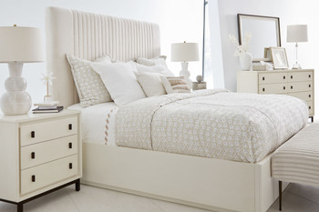 Getting dressed should be an event, and this gorgeous, high contrast dresser is the star of the show. Solid parawood construction in a smooth, plastered alabaster finish creates a luxurious look and feel, setting the backdrop for unique vertically oriented, modern drawer pulls in a bronze finish. Eight spacious drawers can accommodate all your wardrobe essentials in style, with bottom drawers lined in aromatic cedar.
