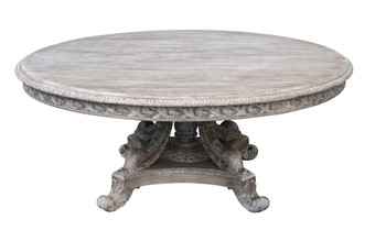 The Mystique Grey Mahogany Anglia Dining Table and Chair Set of 7 includes 6 Mystique Mahogany Casual Dining Side Chairs and a spectacular Mystique Grey Mahogany Anglia 72 Round Dining Table from our new Mystique Mahogany Collection from Heritage a division of AFD Home. The offering includes truly one of the most intricate and beautiful hand-carved dining tables in the market, a work of carved art second to none and regardless of price. The chairs are a luxurious scale and sit perfectly. The upholstery chosen is a neutral thick linen that works nicely with the finish and offers harmony for most interiors. Both the Anglia Table and the dining chairs offered are 100 percent Hand carved, actually bench made furnishings, carved one piece at a time out of hand-selected solid Mahogany wood. They are then tastefully finished in our NEW intermediate Mystique Grey, a neutral or achromatic color. Our Mystique Grey finishing technique has evolved over the years and as such, is the special focus of this new Collection. Mystique Grey is so placeable by today’s top designers because it is truly a color that is without color, A salute to a new contemporary, sophisticated lifestyle, a combination of finish and design that celebrate the beauty of fine grain of the Mahogany wood and enhance the vestiges of this rich wood gloriously visible in a tone that will create solidity to your overall design. This table set works beautifully with many of the Mystique Mahogany Grey Collection offerings such as buffets, credenzas, wall units, and more. Minor assembly of the top to the base allows easier placement into the home, and chairs are fully assembled