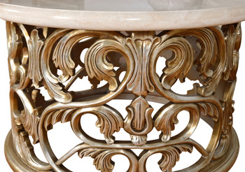 The Platine Hand Carved Coffee Table w Cream Marfil Marble is completely Hand Carved from solid Mahogany. Hand Made and Hand Finished by the Master Carvers and Finishers of the Heritage company. Rare to find in this quality of workmanship. The Platine finish with hues of Champagne Golden Silver is equally spectacular, a multi step process of actually silver leafing the frames and layering and finishing techniques. The imported Cream Marfil Top blends tastefully and balances this amazing finishing. While this Cocktail Table is sold separately it pairs beautifully with the matching Platine Hand Carved Round Side Table w Cream Marfil Marble for a more complete design. The Platine Collection offers many wonderful options to expand your design, consider any of the Platine matching Upholstery and Occasional pieces from this top Quality Collection. All furniture is hand made and finished 1 piece at a time.