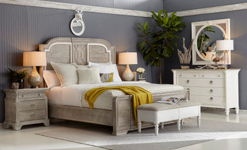 The sturdy little Light Keeper?s Bedside Chest has two drawers in its body and a third drawer tucked into the concave upper box banded with chevron carving. Artisanal details include molding around top and base; vintage-inspired drawer pulls rubbed with antique white; and wooden pegs on the bracket feet. The oak chest?s scrubbed finish brings out the beauty of the wood?s grain.