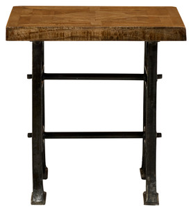 A beautiful and strong Wood and Industrial Iron Mango Parquet Lamp Table 24 Inch The Side Table Top is built using Solid Mango hardwoods in an artistic parquet design. Naturally finished with a satin sheen that protects and enhances the wood for long term use. The grain of the Mango Wood offers beautiful variations of natural color with rich depth and tone. The top is mounted to an authentic Cast iron Industrial base that is heavy and stable. The base is hand cast in Iron using authentic Industrial molds. The complete table is beautiful and the strength of its construction will offer years and years of use for even the most active of families. Sold separately this console can be ordered and used separately. Consider combining with the matching Wood and Industrial Iron Mango Parquet Console Table 60 Inch or the matching Wood and Industrial Iron Mango Parquet Coffee Table 54 Inch to complete your desired design. Hand Made and Hand Finished in India for AFD Home. Minor Assembly Required.