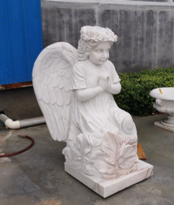 White Marble Cherub Praying Statue H47.3 Inches Ge21505