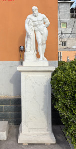 White Marble Hercules on Pedestal H39.4 Inches Stand:H48.8 Inches Ge21513
