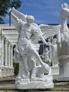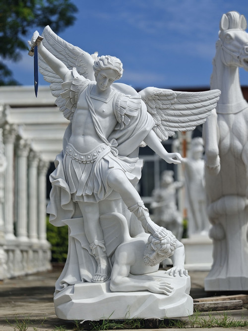 White Marble Michael Archangel Statue H74.8 Inches Ge21518