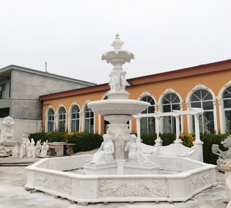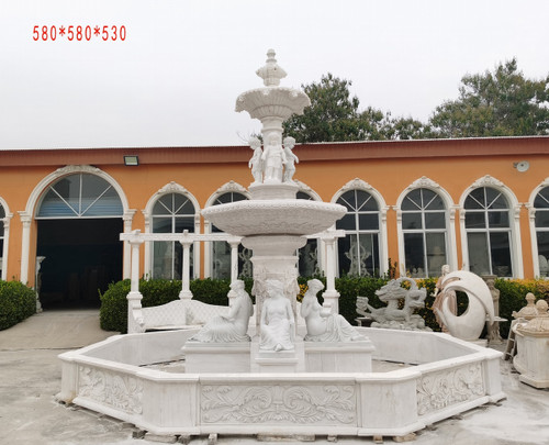 White Marble Monumental Sculptural Fountain H208*D228 Inches Ge21528