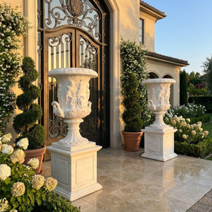 White Marble Pair of Carved Urns H48.8*D22 Inches Ge21488