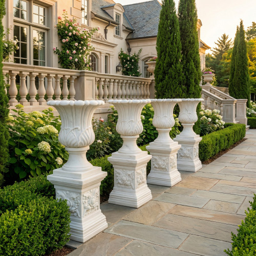 White Marble Pair of Garden Flower Urns on Stand H44*D19.7 Inches Ge21534