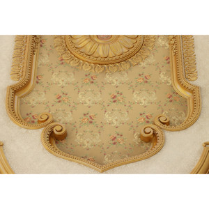 • The 94 Inch x51 InchGolden Rectangular Floral Ceiling Medallion is a grand lighting application for fine homes and large scale projects.This ceiling lighting accessory comes prefinished in beautiful gold and beige accents featuring a recessed center panel with slightly raised floral pattern detail.A 1.5 inch center hole is provided for easy installation of the ceiling molding with chandeliers and fans.Big on look but light on weight, these decorative ceiling medallions are precision cast using durable polymers that are non-shrinking and 100% waterproof.Installation is made easier with intermittent spaces provided in the outer edge that accept hollow wall anchors or sheet rock screws.Decorative caps are provided that will cover the anchors completing the design creating a seamless outer edge.Shipping fully assembled and prefinished ceiling medallions provide instant architectural detail to otherwise plain open ceiling spaces.Add beauty to any chandelier or fan with this amazing decorative lighting solution that gives you the look of custom crown molding trim work at an affordable price.