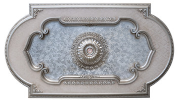 - The Champagne Silver Rectangular Chandelier Ceiling Medallion 94 inch is a large, fully assembled and intricately finished Ceiling Medallion. Measuring 94 x 3x 51. Finished in a softened Silver with a light wash of Gold, our Champagne Silver Medallion features a recessed center panel with slightly raised floral pattern detail. It offers a luxurious finish in a stylish design. Hand Cast in a lightweight Polystyrene that will never shrink split or crack. The lighter weight makes installations easier. This Medallion design features an outer cabochon border with intermittent spaces open for spacing in simply securing with sheetrock screws and, or hollow wall drywall anchors. Decorative caps are provided to cover your screw heads for a perfect profession looking install. This completely finished Architectural Ceiling Medallion creates instant 3 dimensional detail to an otherwise boring plain ceiling. It also offers a crowning Elegance to a Chandelier Installation, which is a perfect time to upgrade and install your selected Medallion. Prior to the creation of this prefinished medallion collection, the idea of adding such a detail would have best been added during construction of the home or during a major renovation. An addition of this level of detail would have required a carpenter, a finisher, and a faux finisher, it would be very expensive and very messy installation. The expansive collection offered of Timeless Creation Medallions by AFD Home offers a wide selection of affordable sizes, shapes, and finishes enabling you to find a perfect solution to enhance your interior design and add value to your Home or Business Hollow wall anchors are not provided.