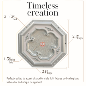 Silver Four Leaf Clover and Silver Frame Octagon Chandelier Ceiling Medallion 24in