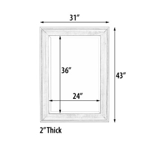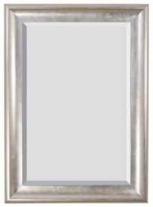 With the popularity of our Sterling Mirror Collection comes this new slimmer profile option. The exterior dimensions is 31 x 43 Inches making it a perfect size for many applications including over bathroom vanities. It can be hung either direction with the attached hangers. The mirror comes with a large 1 1/4 inch Beveled mirror. The frame is made of solid wood with a trending Silver leaf Champagne Finish. Offering a clean and modern interior design applications. No Assembly Required.