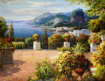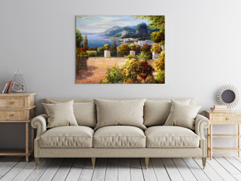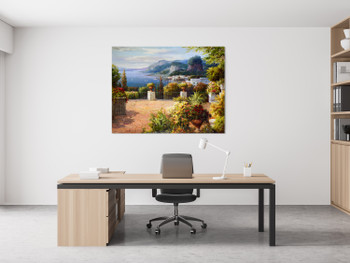 Our Mediterranean image depicts the beauty of the Mediterranean coast. The painting with artists attention to detail and ability to invoke depth with the skilled use of light and shadowing creates certain desire to visit this romantic landscape while bringing beauty to the setting it is placed. It comes gallery wrapped and ready to hang. The finished image size is 24 x 36 inches. A Le Beau Giclee is a Museum quality recreation of an original top artistswork on canvas by AFD. The techniques used are one of the most accurate forms of art reproduction today, utilizing 100% archival inks and acid-free canvas. Each Le Beau Giclee is a masterpiece creation and are hand embellished by a professional artist in our studio to achieve the rich texture and depth of the final delivered artwork making it almost indistinguishable from the original oil painting. Now allowing some of the finest oil paintings to no longer be exclusive to museums and private collectors and often due to price making the most beautiful paintings ever created unobtainable for enjoying by others. A Le Beau Giclee will remain an heirloom piece with display time of well over 100 years.