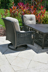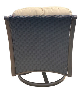 - Our most popular outdoor Deep Seating Chat or Club Chair with Plush Seats and Backs with dual Swivel and Rocking Features. It is one of the best designed, best manufactured, comfortable and fairly priced Club Chairs in the market. This club chair is also referred to as a Chat Chair, offers popular relaxed deep and plush seating comfort with full swivel and rocking features. The chair is of a style, you would expect to enjoy at a fine luxurious spa, now this quality and level of design is being offered to you from Bridgeton Moore’s “Monterey Collection”. Sold separately this Chair is often ordered with the Monterey designed matching Propane Fire Pit Table to create beautiful sitting areas. The collection offers the beauty of interior furniture but specially manufactured in a quality to create the best long lasting outdoor patio furniture. The Monterey Collection is one of the newest and largest collections offered by Bridgeton Moore with many wonderful options to complete any type of project, From Dining to seating options, with lots of cool sets and matching items to consider. Hand woven and hand made by Bridgeton Moore Outdoor over, 100 % Aluminum frames that will never rust. The weave itself is an upgrade synthetic weave with a rich touch and appearance. The weave allows for expansion and contraction in different climates and is amongst the best on the market. A fine collection styled around the beauty of interior furniture but manufactured in a quality to create, the best long lasting outdoor patio furniture. Constructed using todays Best in Class manufacturing techniques, Bridgeton Moore has established high brand quality standards and offers one of the best warranties in the Industry, 3 years on all frames and finish under normal conditions, fabrics are all Sumbrella grade and come with a manufacturers supplied two years against any manufacturing defects and or fading from date of purchase. Note * All products us ed outdoors require reasonable care and that level of care depends on varying external conditions. Covers are recommended for year round outdoor exposure and especially for all coastal applications. Extended exposure in coastal areas can cause corrosion and while this product is used in many coastal applications, they are voided from warranty. Simple hosing down or rinsing off salt exposure if/any will protect and extend the beautiful finish. The fabrics can be easily cleaned in a variety of ways and Sumbrella fabrics are so colorfast they can withstand even the use of bleach. Minor Assembly Required..