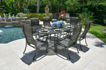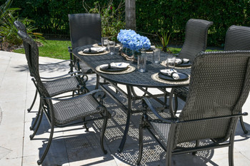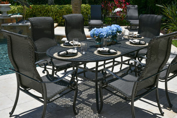 • Set includes 6 Wyndemere Dining Chairs and a Hand Cast Aluminum Oval Wyndemere Table