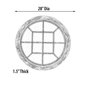 Rustic Whitewash Windowpane Round Mirror 28″Dia